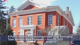 - A COVID-19 Public Service Announcement from Great Barrington Town Manager Mark Pruhenski, April 10, 2020.
